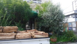 春先から、薪工場に借りた土地の荒れていた部分を造成して、薪を収容できる量を増やしています。 先週パレ