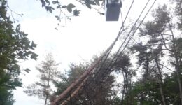 (株)中国電力ネットワークの配電線への倒木の処理です。根返