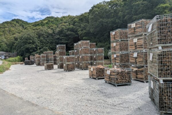 春先から、薪工場に借りた土地の荒れていた部分を造成して、薪を収容できる量を増やしています。