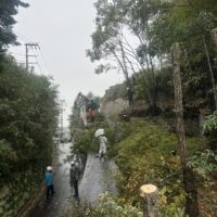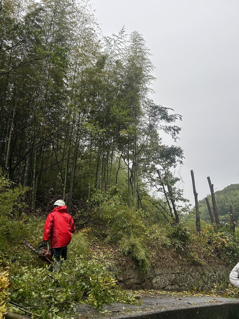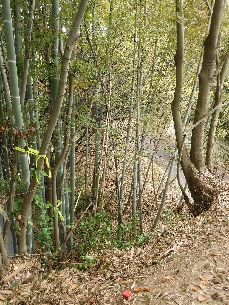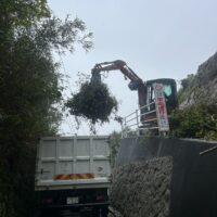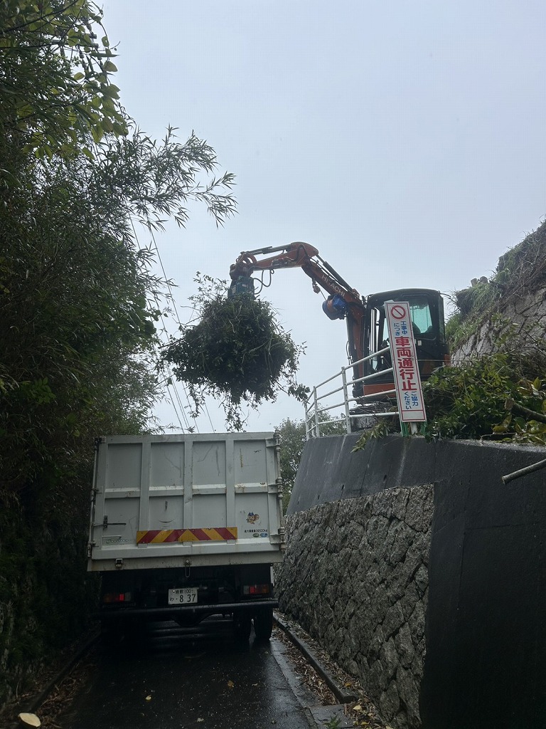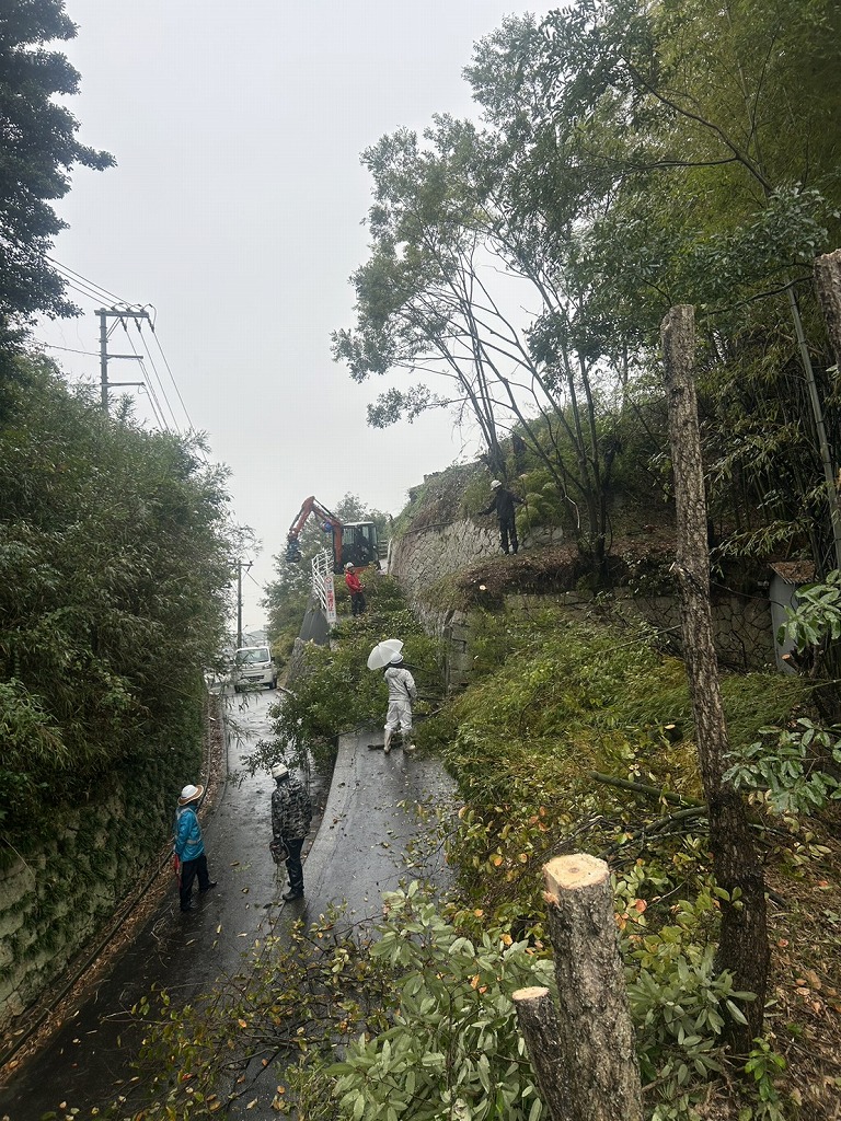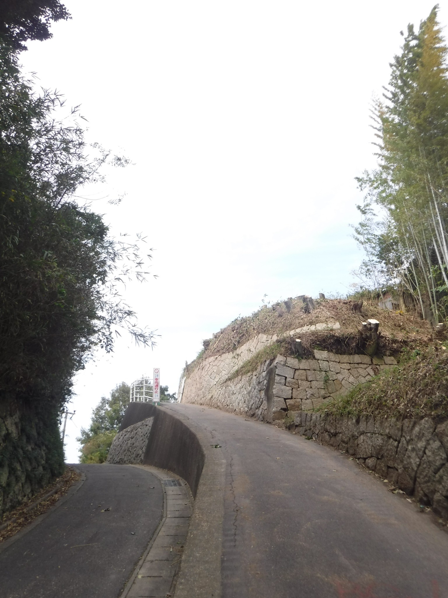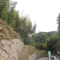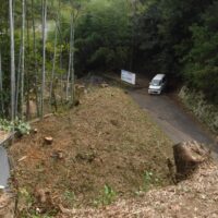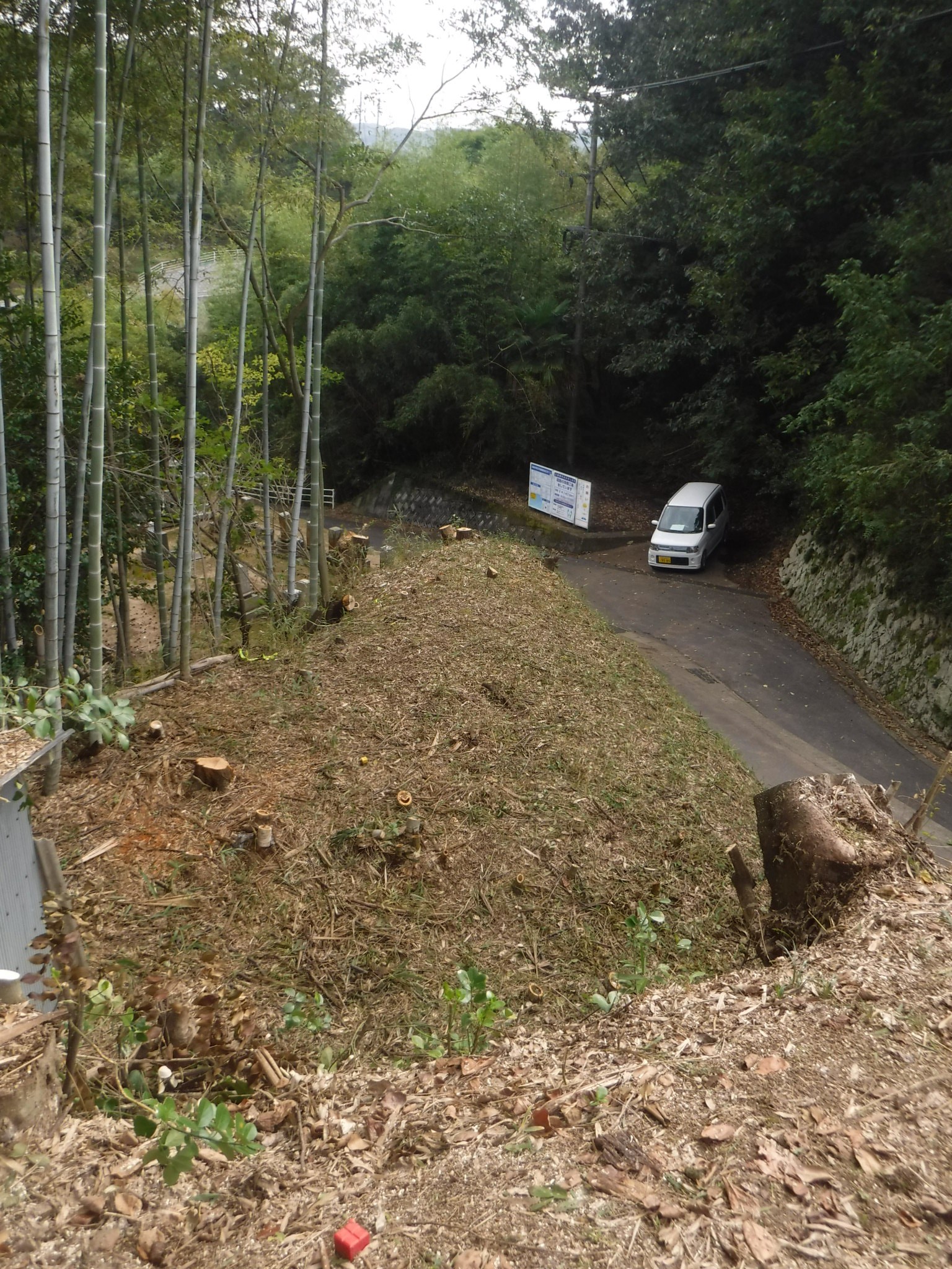 道路拡幅工事(道路法面の石垣を崩して4m道路に付替える)に伴う伐採です。場所は岡山市内の南端の方です。