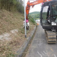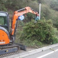 弊社では配電線の新設・張り替えの際に、架線に樹木からの十分な離隔を確保するため伐採をしています。電線に近い木は根切等にして、支障木が長期間にわたって出ないようにします。今回の場所は瀬戸内市邑久町山手です。